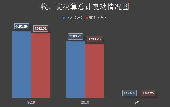 2020年度收入总计3983.79万元。与2019年相比,收入总计减少708.07万元,下降15.09%。2020年度支出总计3793.23万元。与2019年相比,支出总计减少741.28万元,下降16.35%主要变动原因是受新冠疫情影响设计项目签订数量和金额较上年度有所减少。